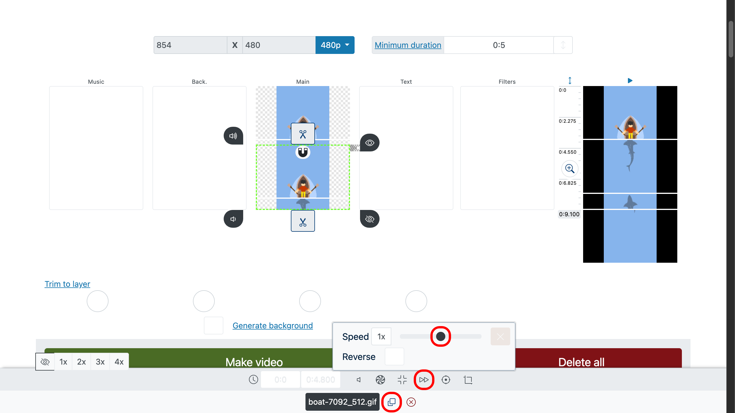 再生速度も変更できます。動きを強調したいなら速く、印象を深めたいなら遅く。 もし動きがカクつく場合は、フレームレートを24〜30fpsに上げてください。