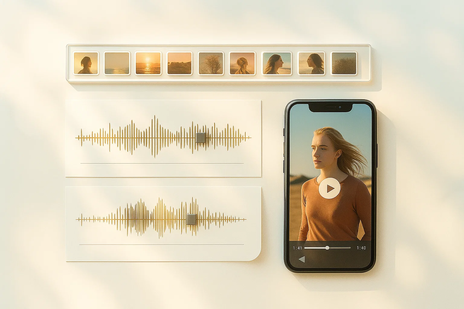 2. タイムラインに配置。 並べ替え、端の微調整、スナップで気持ちよく整列。冷蔵庫のマグネットみたいに、ただし献立メモは減ります。